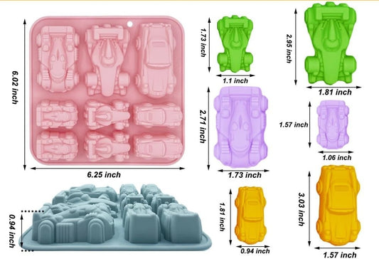 3D Silicone Car Molds — 9-Cavity Racing Car Chocolate & Ice Cube Tray