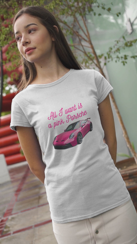 All I Want Is a Pink Porsche T-Shirt – Dream Car Graphic Tee