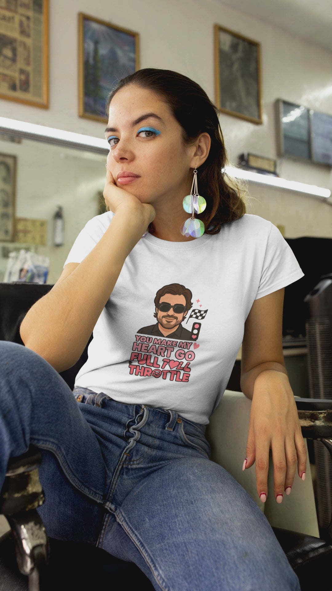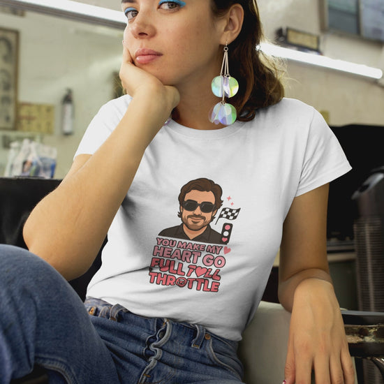 Love at full speed! Featuring Fernando Alonso with the text “You make my heart go full throttle”, this tee is the perfect blend of racing passion, humor, and romance. Ideal as a gift for your partner or as a fun addition to any F1 fan’s wardrobe. ❤️🏁