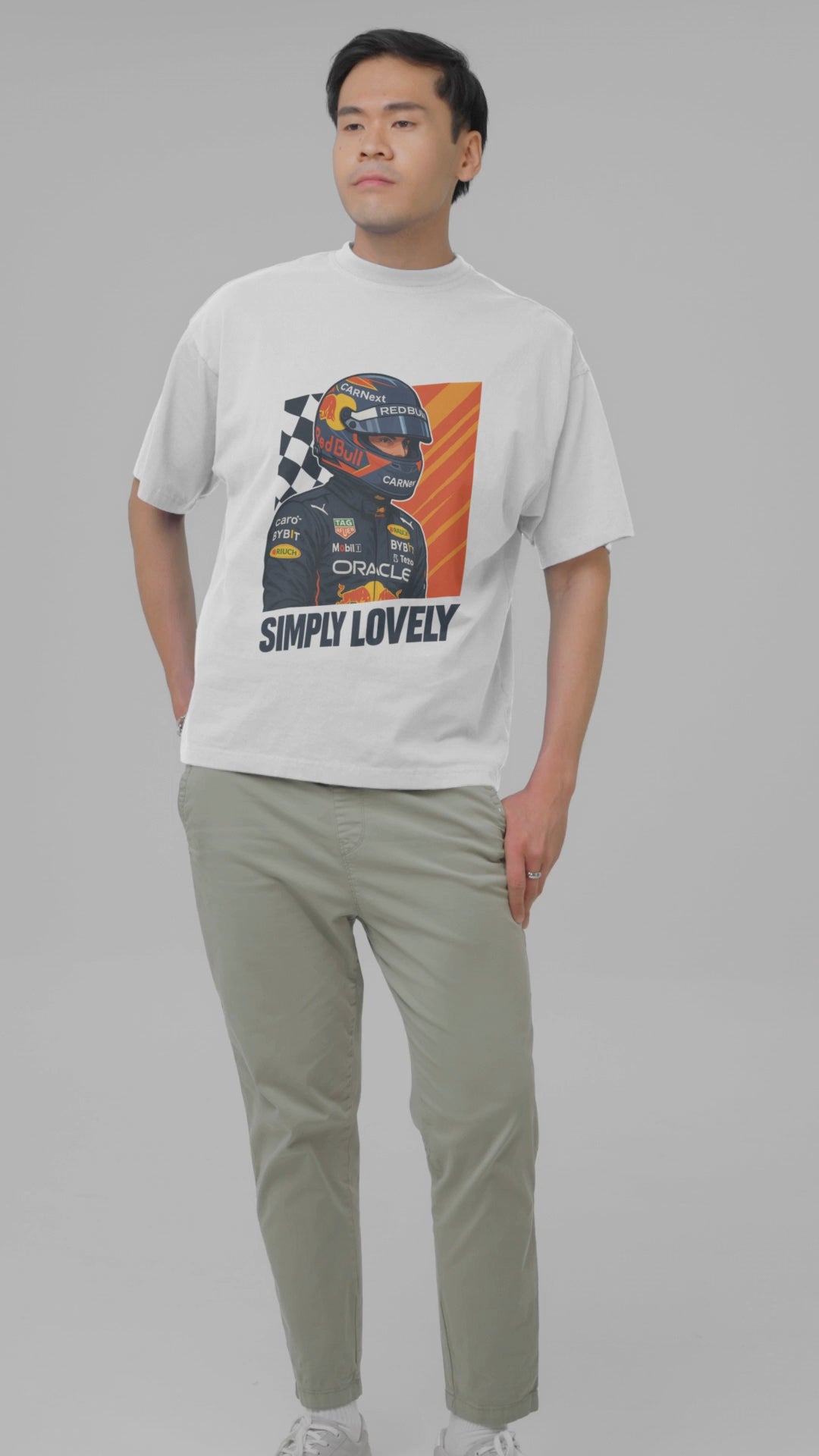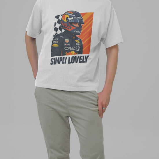 Show your support for the reigning Formula 1 World Champion with the Max Verstappen Simply Lovely Tee. Featuring an eye-catching graphic of Max in his Red Bull Racing suit and the iconic “Simply Lovely” phrase, this shirt is the perfect statement piece for true F1 fans.