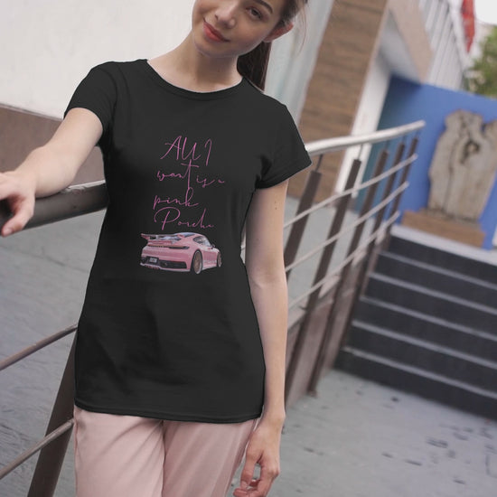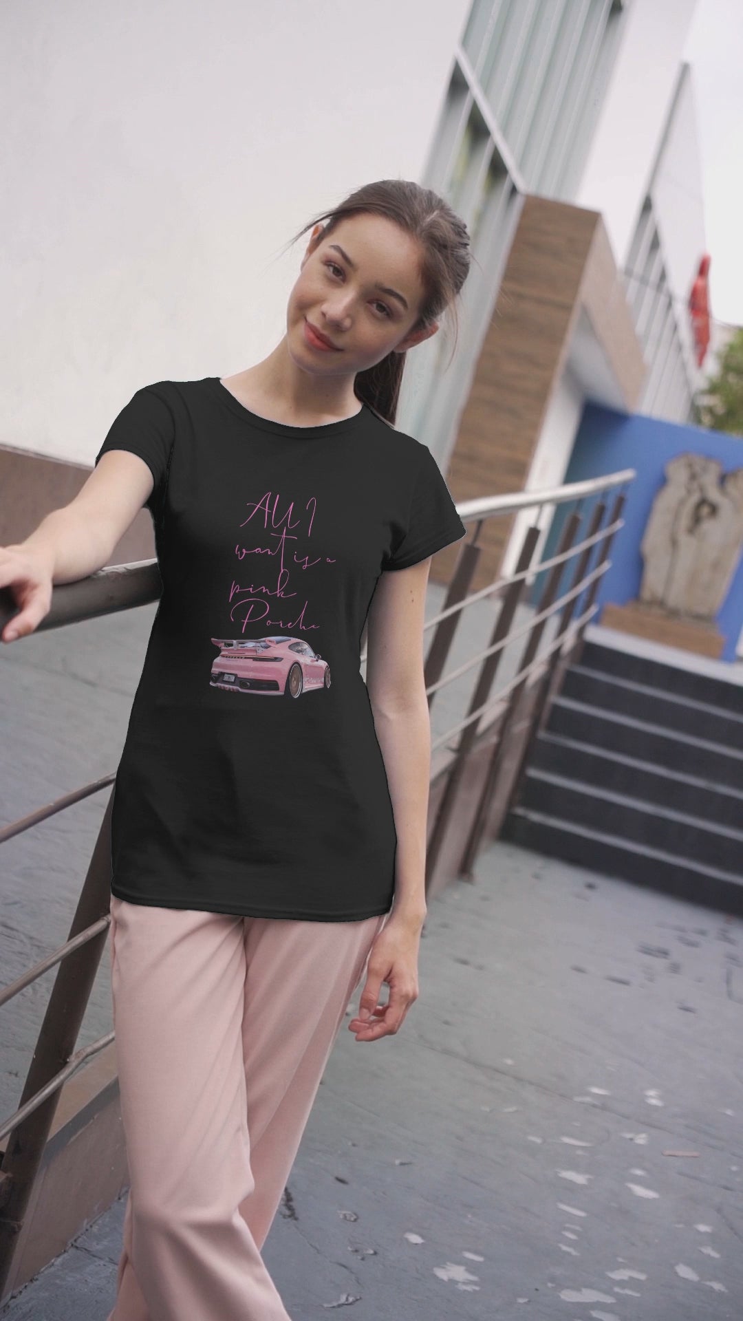 This minimalist “All I Want Is a Pink Porsche” tee showcases the sleek rear view of a pastel Porsche 911 – subtle, feminine, and effortlessly cool. A perfect everyday piece for dreamers who chase luxury, independence, and soft aesthetic vibes.