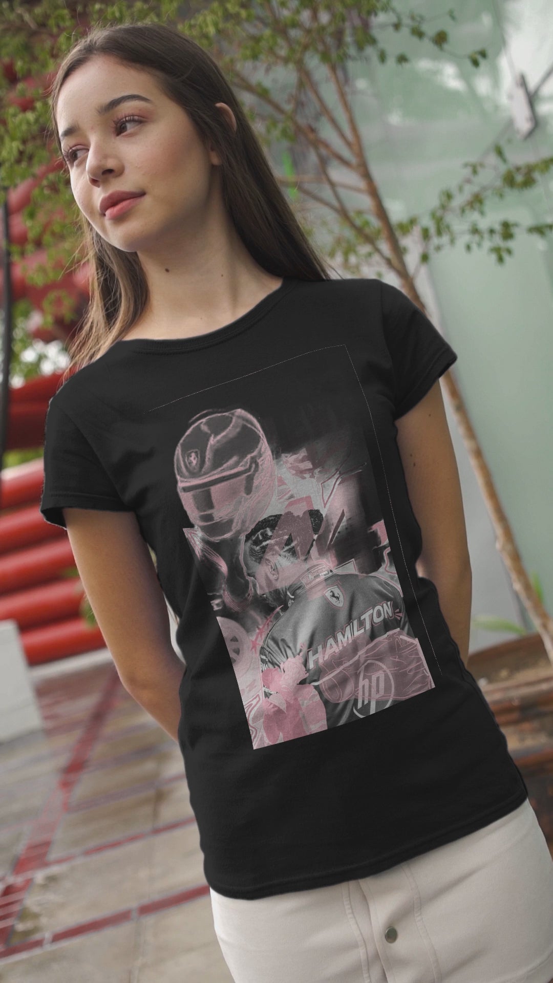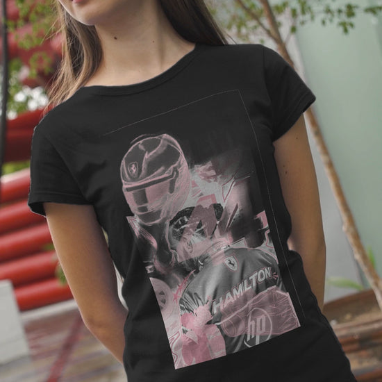 Bold, artistic, and powerful — this “Hamilton 44” tee captures the legacy of one of Formula 1’s greatest icons through a modern pink collage design.